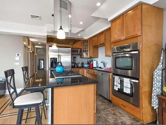 This one-of-a-kind PENTHOUSE features 2 outdoor spaces with breathtaking views of the city from the large private roof deck. This well kept and spacious 2 bedroom, 2 bath unit features central air, washer/dryer, gas fireplace, and surround sound with control pads in all rooms and decks. The living area has a private deck ideal for grill and lounging. The kitchen features granite counters, stainless appliances, as well as a center island complete with gas cooking and hood. Both bedrooms are very spacious with custom closets. The second floor features extra living space, which can be used as a gym or home office with a wet bar, wine fridge and granite countertops. The rental includes a deeded and assigned garage parking space in a detached garage behind the building. Access to that garage is accessible through the back door of the building. The unit has its own storage unit in the basement.