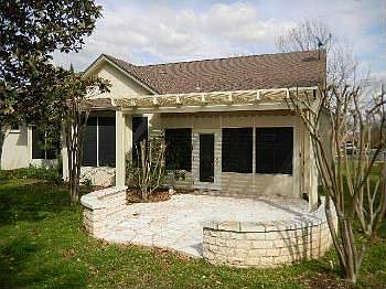 Appealing Sun City Pedernales that offers lots of living space with 2 bedrooms, office & 2 1/2 baths plus a golf cart garage.Driveway,walk & porch have been stenciled for great curb appeal & attractive entry. Ceramic tile in foyer and traffic areas w/carpet in the balance of the rooms.Center island kitchen has built-in appliances w/electric cook-top,bay window in breakfast nook & the refrigerator will convey.3 steps w/rail go into garage.Mstr bath w/garden tub,dual sinks & shower. Super home!! Offered by The Stacy Group.