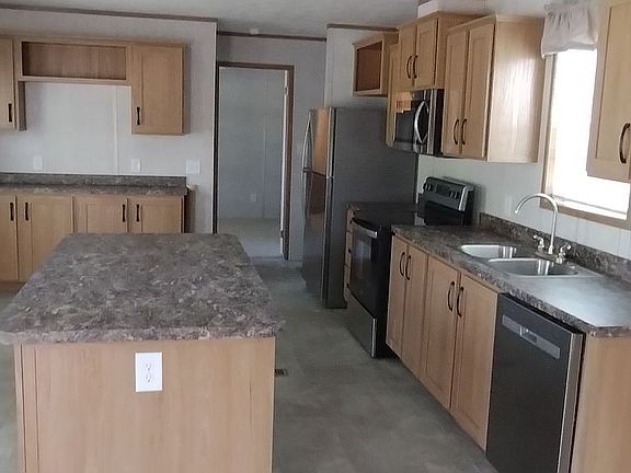 2023 Blazer/Commodore 14×68 Single Wide mobile home. Never lived in, 2 bedroom, 2 bath. Bedrooms are on each end of the home, main bedroom next to bathroom with walk-in shower. Second bathroom has shower/tub. Washer & dryer hook up area. Total electric, includes stove, refrigerator, central air located in Woodland Community. Monthly lot rent ($310.00 per month) includes trash services. Pet policy: up to 2 indoor house cats or caged animal such as hamster, bird, aquarium. No pet dogs of any size. Ready date: anticipated June 1, 2023.