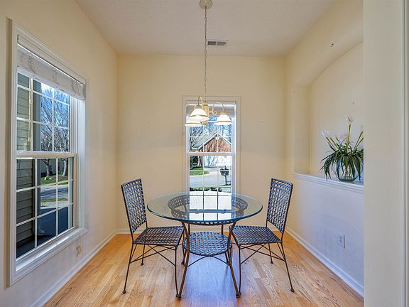 Wonderful end unit Ranch town home w/ lots of upgrades. Backs to a private wooded area. Extensive hardwoods in Kit, Breakfast, Dining and Family rooms. Kitchen has maple cab's w/ built-in Microwave and Smooth top stove. Vaulted ceiling in Family and Tray in Master. Master bath has custom oversized shower with separate whirlpool tub. Corner fireplace has gas logs, optional blower and Travertine surround. 2 car garage and Sun Room with tile floor. Shopping, medical facilities, hospital, restaurants, grocery stores close by. HOA includes pool, clubhouse and landscaping.Tankless hot water heater! Washer/Dryer/Fridge/Garage Freezer and gas grill all convey.Garage has sink and cabinets.
