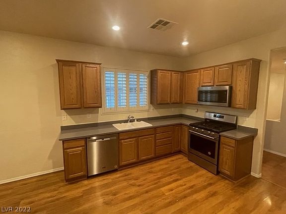 Single Story Home in Age Restricted 55+ Solera Community. 3 BD- 2 Baths, Upgraded Wood Flooring In Living Areas, Tile Flooring in Bathrooms, All NEW Stainless Steel Appliances in Kitchen, Plantation Shutters and Ceiling Fans Throughout. Recessed Lighting in Kitchen and Dining Area, Security Door to Front Door, Water Softener, French Doors from Master BD to Bath, Master Bath has Dual Sinks and Walk in Closet. Front Load Washer and Dryer. Covered Patio in the Backyard. This Age Restricted 55+ Community Features Boast Indoor Pool, Fitness Facility, Recreation, and Tennis Courts! A must See!