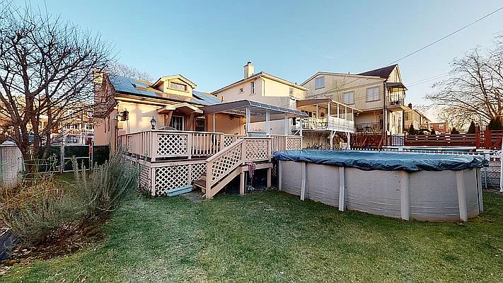 Unique, amenities filled single family house in Sheepsheadbay ready to move in! This beautiful house features: private driveway, pool, jacuzzi, large deck, updated heating and cooling systems. Open-concept on the first and second floors. Kitchen has heated floors and ample cabinet space, and a small breakfast nook, and stainless steel appliances. Appearing in a nice corner on the first floor is the washer/dryer. You'll find a full bathroom on the first floor. As you travel up the stairs, you will see two bedrooms. There's a master bedroom with a half bath and nice, huge closets. The second bedroom also has wall-to-wall closet space. This home is complete with private driveway, which is a gem in itself. In addition the basement has a private separate entrance with a bathroom and extra storage space, great for a home office or gym.