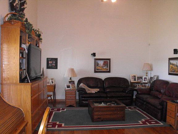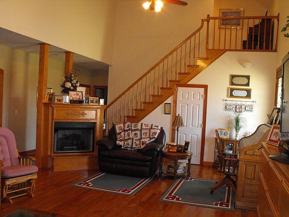 A PLACE TO HANG YOUR HEART! Upstairs downstairs inside outside everything you see will please you. Large family room with high ceilings,fireplace with gas logs,built in storage and beautiful hardwood floors. Kitchen has corian counter tops,beautiful cabinets,center island w/eat at bar,breakfast nook. There are two bedrooms and two baths located on the main level. Master bath has walk in shower,large jetted tub, double sinks with lots of storage. Upstairs has two bedrooms and a Jack and Jill bath.Office is up stairs. Outside there is a nice wrap around porch. Basement has a weight room or recreation room which ever you need and also a wood working shop.Over the garage is an unfinished room.