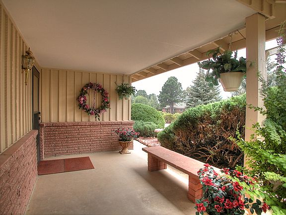 One Level Living in Kissing Camels! This seasonal, two-owner home features a large spacious living room that includes a wood burning fireplace, three walkouts to west facing patio with Pikes Peak and mountain views. The dining room is conveniently located between the living room and kitchen providing a smooth flow for entertaining. Located on the north end of the home, the private master suite offers a full bath with tub and shower as well as a separate bath with free-standing shower. The master also includes walk-in closets, an abundance of built-ins and enough room for a sitting area or office. The additional two bedrooms, share a full bath and are centrally located. Other features include beamed ceilings, low maintenance landscaping, covered front porch plus covered and enclosed patio off the living room with wonderful views.