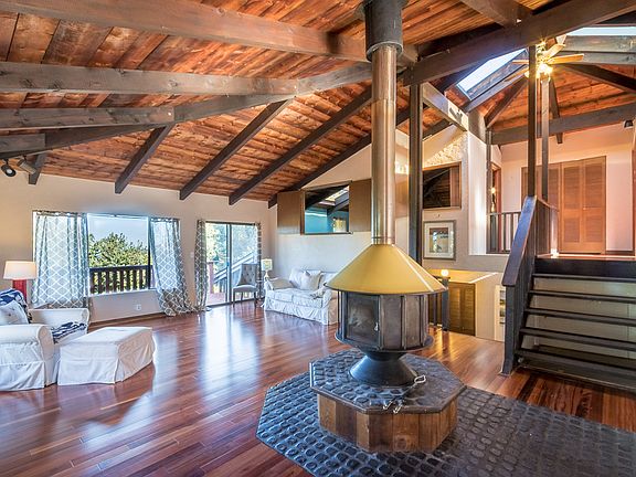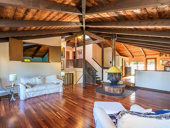 Beautiful Kula living on over 30,000 sq. ft. of wooded greenery, this 4 bedroom, 2 bath home is nestled on a gentle slope. This 2-story home features vaulted open-beam ceilings complimented by new tiger wood flooring, a well-placed fireplace in the spacious open concept living area, another fireplace in the dining area, and a remodeled kitchen with generous countertops. The dining area next to the kitchen features it's own wood burning stove. Over 3,000 sq. ft. of living space and spacious decking on two sides of the home, which can be accessed via the main living room slider, or the wide staircase. The main bathroom has a double sink, separate shower, a claw-foot bath tub, and ample light from 2 vaulted skylights. Private and quiet.