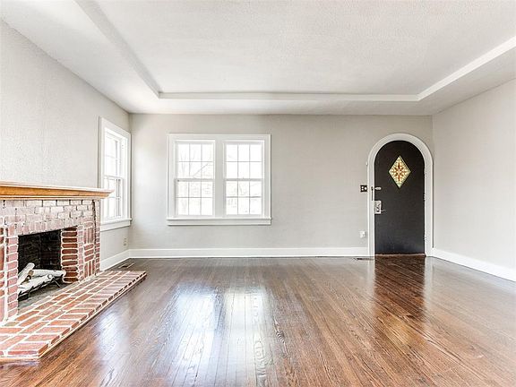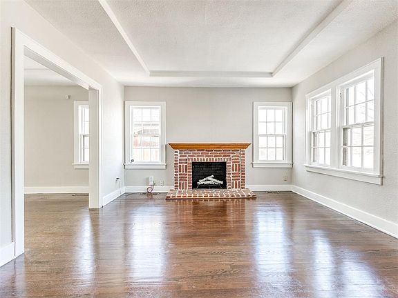 This charming two-bedroom, one-bathroom home is nestled in the picturesque, Miller Neighborhood filled with mature trees, offering the perfect blend of character and comfort. Freshly painted interior with a welcoming atmosphere and cozy layout. The living room flows to a large formal dining room then onto the passthrough kitchen with original built-in desk for all your work-from-home needs. Refrigerator, washer and dryer convey with property to make your move in easier. Tankless hot-water heater means you'll never run out of hot water in your beautiful black and white tile bathroom. The private backyard provides a tranquil bricked patio retreat for outdoor relaxation or entertaining. With its blend of timeless appeal and modern care, this home offers an exceptional opportunity to enjoy the serenity and charm of a well-established community. Don’t miss the chance to kick back on this gorgeous front porch and make this peaceful haven your own!