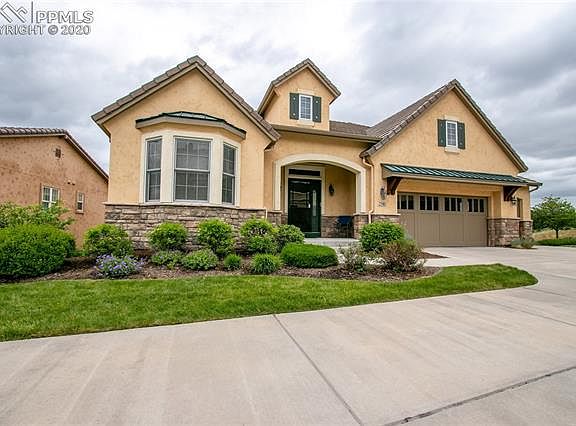 This home is absolutely stunning and has so many unique features for your buyers! Situated on a large lot in a low maintenance area of the Pine Creek Community, this home boasts stunning views of the course and valley, as well as convenient access to Briargate amenities. The vaulted entryway is stunning with hardwood floors. There is a luxurious main level master suite as well as an additional bedroom and full bathroom. The dining room is HUGE and overlooks a private courtyard area. There is a wet bar area with large wine cooler. This gourmet kitchen is a show stopper! It has 2 islands - one for prepping food which has a large dual basin stainless steel sink and dishwasher. The Wolf professional oven and stove can accommodate meal prep for a large number of guests! There is an additional dishwasher and walk in pantry. The main level laundry room allows true main level living. The basement is finished and has many gorgeous finishes from a large theatre room area to an expansive wet bar with wine cooler. There are two additional bedrooms and full bathrooms in the basement. The walkout basement is bright and accentuates outdoor living with the large slab patio and gas fire pit.