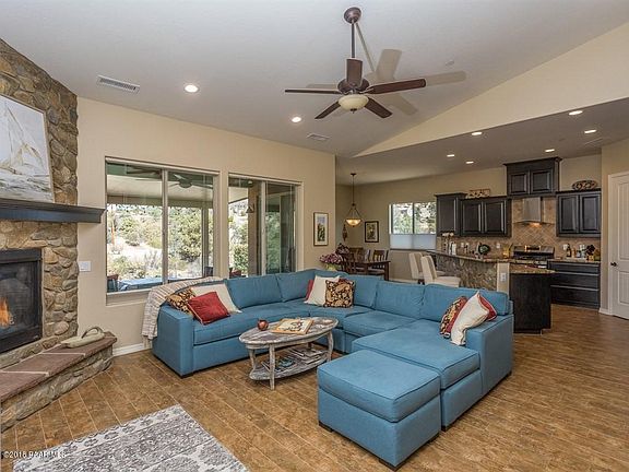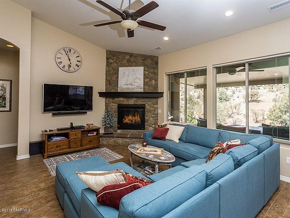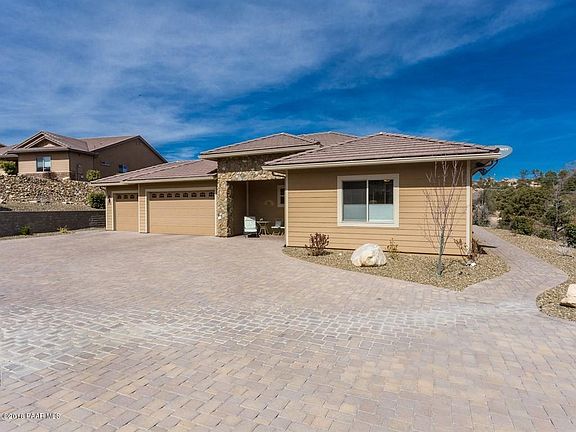 Gracious living in a small subdivision of quality homes, with no HOA! Home is totally accessible with level driveway and no steps! Custom finishes with thoughtful designer touches throughout. The extended covered patio with paver walkways all around is perfect for enjoying Prescott's fabulous climate and gorgeous sunsets. The backyard is peaceful and serene, with lush, manicured natural landscaping--your own private greenbelt on almost an acre! 3 bedrooms, 2-1/2 baths, with a bright, open floorplan. Lovely to look at, delightful to live in! And fellows, the garage floor is gorgeous!