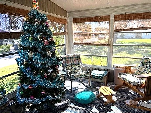 2 BR 2 BA 1120 SQ FT home, Furnished, newer appliances, large eat in kitchen, formal dining area, cathedral ceilings, large master suite, glassed lanai, larger shed, vacant lot next door, long covered driveway, newer rubber roof, AC is 8 years old.