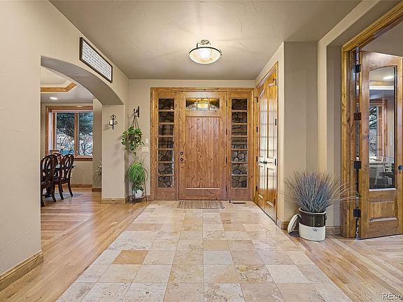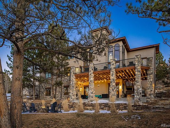 Situated on a large private lot in Escavera, this custom home offers many places to entertain and enough space for retreating to privacy. Soaring ceilings and large cathedral windows invite abundant sunlight highlighting the beautiful designer touches throughout this gorgeous home! Interior features include, a gourmet kitchen with custom Knotty Pine cabinetry, new Viking gas cook-top, walk-in pantry, dual ovens, a butler pantry with sink, a wet bar in the great room, a main floor laundry room with plenty of cabinets, a utility sink and workstation. Other features include, Knotty Pine solid wood doors, newer carpet, wiring for surround sound, central vacuum system, and three fireplaces. As you ascend upstairs, the expansive master suite features a gas fireplace, a large walk-in closet with custom built-ins, a luxurious updated five piece bath with seamless shower and stand alone tub, three additional spacious bedrooms with walk-in closets and two full baths (one en-suite bath and one Jack & Jill). The professionally finished basement offers additional living space, including a second family room with gas fireplace, a large bedroom (could be used a second master), an en-suite bath, a custom built-in wine cabinet, another bedroom and full bath, a large storage room, gym area, and a wine cellar. Your backyard oasis awaits with incredible sunsets from the expansive deck! Enjoy the gentle breeze through the pines and the soothing sound of a water feature, or take some time to soak in the hot tub under the covered patio. Quiet location surrounded by beautiful mature Pine Trees and easy access to the Rec Center, amenities, and entertainment. This meticulously maintained home is in one of the lowest tax brackets in Castle Rock with a low HOA. Peaceful and Luxury Living at its Finest!