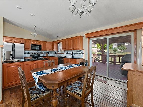 Listed by Aaron Schrader, Black Pine Real Estate (605) 220-8771. You've never seen views like this while living in town! Live close enough to walk to eat out, yet enjoy amazing views of the Black Hills and beautiful sunsets. This well cared for home in the Vernon Heights neighborhood has all that you need: 3 bedrooms, 3 bath, outdoor deck space and large back yard to play and entertain. 3 garage stalls, wired with plenty of 110 and 220 outlets, keep all of your toys and vehicles protected. Inside, there are two living spaces to spread out and relax. The large primary bedroom has a wonderful sitting room with private back deck access with a large walk-in closet. Enjoy granite counters in the kitchen with an island to spread out your prep work on, while visiting with family and friends in the open floor plan. Home has recently updated exterior Smart Side siding and Pella windows as well, and in the back yard there are fruit trees and 3 large sheds for even more storage. Take a look, schedule your showing! Listed by Aaron Schrader, Black Pine Real Estate (605)220-8771.