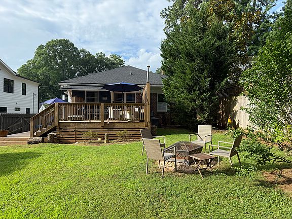 Located in historic East Lake this charming, light filled brick bungalow is FULLY FURNISHED and move in ready. This 1930s classic has been renovated and features a new kitchen, roof, water heater and furnace. The large back yard features a 6 foot privacy fence and the front yard has a 4 foot fence making both areas perfect for dogs. The two level deck has loungers, a dining area and gas grill. The screened in front porch is a stand out detail as are the hardwood floors, mudroom and fireplace (suitable for manufactured fire logs). 3 bedrooms and 1 bath make this the perfect home for a couple or single person with plenty of room for dogs (sorry, no cats). New appliances including washer/dryer. Ceiling fans in every room. Workout equipment and photo studio in unfinished basement. All utilities and bi-monthly yard maintenance included. Walking distance to East Lake golf course, Oakhurst and the highly rated restaurants at 2nd and Hosea. 3-12 month midterm lease negotiable. Gas, water, electric and internet included. Up to two well behaved dogs allowed. No cats. Pet deposit of $300 in addition to security deposit required No smoking of any kind allowed indoors.