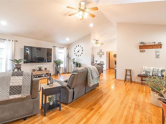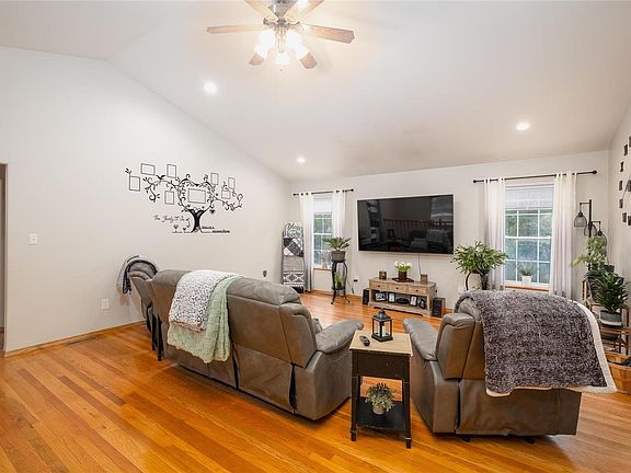 Comfort meets luxury in this beautiful 5-acre home! Featuring 5 welcoming bedrooms (one non-conforming) and 3 baths, it’s perfect for both family life and entertaining. Enjoy the warmth of hardwood floors on the main level and plush carpeting in the bedrooms for added comfort. The master suite offers a spa-like experience with its separate tub and shower, plus double sinks. Start your mornings on the covered front porch and spend evenings shooting hoops on your private basketball court. That area could also be used to add a shed. This home is a blend of comfort and upscale living—a MUST-SEE!