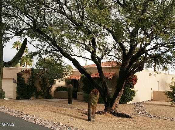 Rio Verde Country Club membership available at no cost, a $25,000 value if you join within 90 days of closing. Come by and see the coolest tree in all of Rio Verde in the side yard! This is a great home to move in and put your own finishing touches on! Kitchen includes new stainless steel appliances and an eat-in breakfast area. Beehive fireplace in living room. Dining in living room. Large master bedroom with separate patio access. Dual sink vanity with new granite countertop in master bath. New granite vanity in guest bath. Covered wrap-around back patio.