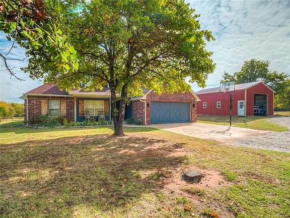 ****Under contract, taking back up offers only******** This has it all plus room to roam! Home has fresh paint in living areas and main bedroom & new wood-look tile, and new carpet throughout. Acreage features a storm shelter, pole barn (framed and ready for concrete), loafing shed, and is fenced for livestock. The home has 3 beds and two baths, PLUS a bonus room upstairs. The owners suite has shower with separate jetted tub, double sinks and a walk in closet. Enjoy your evenings on the quiet back patio. All of this with a new roof in 2021 and HVAC units replaced roughly 5 years ago. Paved road, close to Blanchard and easy commute to Norman, Tri-City, OKC. Buyer to verify all information including school district.
