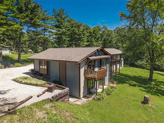 This remarkable house boasts 8 bedrooms, 5 bathrooms, 4 kitchens, 3 Laundry rooms, and tons of storage space. Have in-laws? You and they will be in heaven here. The adjoined but separate apartment features 3 bedrooms, vaulted main room, elevated private deck, and 1500 sq/ft of space on two levels. The levels can actually be separated into two rentals with separate entrances. The main house features 5 BR, 3BA, with a vaulted family room, private elevated deck, and 3000 sq/ft of living space. It would be possible for a family to have three separate rental units and still have approximately 1500 sq/ft of separate living space. Let others pay your mortgage! All this in a quiet country setting nestled right up against Principia College campus. All kitchen appliances included in sale. Main house kitchen appliances new in 2018. Roof new in 2012. Brand new furnace in main house with many updates throughout.