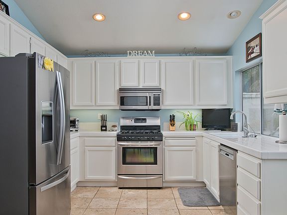 Rare Stevenson Ranch single story.....Rarely do you see this large sized, flat all useable lot for a home under $600K anywhere in the SCV. This delightful showplace packs a great open floorplan! Travertine floors in family room, kitchen & baths. All white classic style kitchen with stainless steel appliances. Open kitchen & dining with tons of storage! Spacious master suite with walk in closet. French door in kitchen opens to HUGE pool sized yard with patio for entertaining! ....2 car attached garage. *NO MELLO ROOS*