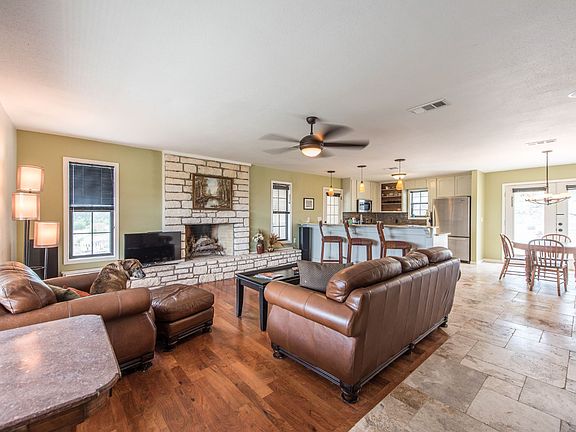Hill Country living at its finest on this 14-acre property on Hamilton Pool Road. Enter the property through the rustic gate and up the paved driveway surrounded by beautiful views leading to this Hill Country retreat. The front porch lines the entire length of this home hosting multiple seating areas with views that stretch miles of rolling valleys and hilltops. Enjoy the vistas from any area of the front porch and the front facing two bedrooms, with panoramic views of the hill country and a winery/vineyard across the road. Inside this beautiful home the open floor plan welcomes you into the living room with Mesquite wood flooring and natural stone flooring through out. Upgrades include a new standing seam metal roof, high efficiency HVAC, plumbing fixtures, doors and hardware, stainless appliances, light fixtures and granite in bathrooms as well as the laundry. The bright kitchen encompasses the Hill Country lifestyle with granite counter tops and a breakfast seating area. French doors open onto your limestone back patio with room for grilling, outdoor seating and entertainment. The spacious three bedrooms and two bathrooms all have unique views of the property. On the property is a 40 X 60 barn with three doors accommodating RV entry and two other large garage doors. The barn also boasts amazing views from the enclosed porch area for your enjoyment while you work and relax. There is another fantastic building site on the hilltop for maximum hill country views, with potential for the current home to be a guesthouse.