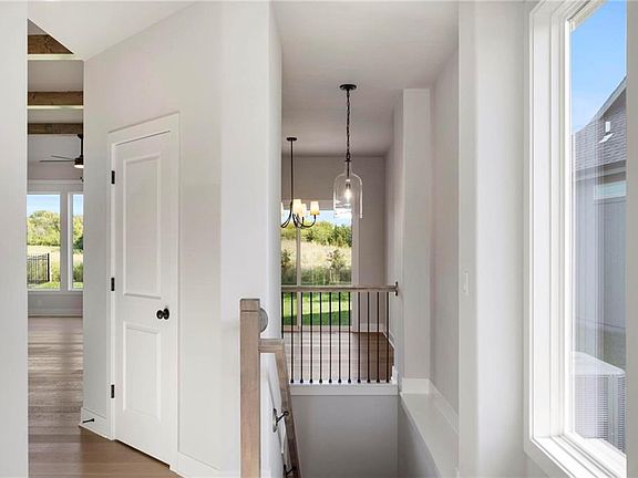 The Hampshire is a mid-size reverse by SAB Homes with a total of 2,525 sq ft. 1,535 on the main floor and 990 on the lower level. Award winner in the Fall Parade of Homes. It has a main floor Master Suite with a separate shower & tub, a double vanity that adjoins to the master closet & laundry room. Bedroom 2 on main floor can also be used as an office. Wood flooring throughout the main floor. L-shaped kitchen with a 5-piece appliance package. Lower Level has bedrooms 3 and 4 and a family room. Three Car Garage. Home backs to the Prairie Highlands Golf Course on a flat lot, providing a beautiful view of the golf course from your covered patio. Located on Lot 164. Home faces North. Just minutes from Lake Olathe.