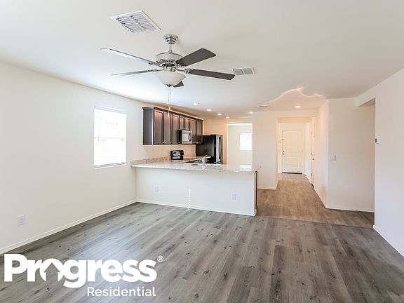 This home is priced to rent and won't be around for long. Apply now, while the current residents are preparing to move out, or call to arrange a meeting with your local Progress Residential leasing specialist today. The beauty of desert living can be yours with this three-bedroom and two-bathroom Buckeye rental home. The living room of this recently renovated rambler boasts vinyl plank flooring and a ceiling fan. Continue your tour in the kitchen and you will find a pantry, granite countertops, and sleek black appliances. The spacious bar counter offers plenty of space to pull up a stool and connect with others. The master suite features a walk-in closet with built-in shelving, soft carpeting, and a private bathroom. You will love spending time outside on the covered patio in the fenced backyard. Call us today to book our personal tour of this 1,540-square-foot move-in-ready home. Note: The listed amenities may not be accurate. Please consult with a Progress Residential leasing agent to confirm the property will meet your individual needs.