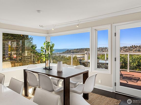Understated from the outside, but expansive within! 4-bed 3-bath home with 2,760 sf of thoughtfully designed living space. The main level features an open floor plan with expansive windows framing impressive westerly views of Puget Sound and Olympic Mountains. French doors open to a generous entertaining deck overlooking a private backyard with a hot tub. Two bedrooms and 2 baths complete the main level. The lower level offers incredible flexibility, with 2 additional bedrooms, a full bath, a family room with kitchenette, and an office. With its own entrance, this level can function as a separate mother-in-law unit. Central A/C. Two off-street parking spaces. Conveniently close to downtown Seattle, parks, schools, and all things Queen Anne.