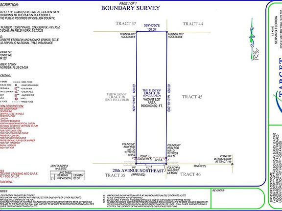 A 2.3-acre residential lot suitable for a single-family home. Conveniently located at the heart of Golden Gate Estate. Accessible from Everglades Blvd N via 20th Ave NE, positioned between Randal Blvd and Golden Gate Blvd E. A mere 15-minute drive to Collier Blvd (SR 951). Detailed floor plans and artistic representations are accessible for new construction, offering a 2,000-square-foot residence with 3 bedrooms plus a den and 2 baths. This property seamlessly blends modern amenities with expansive living spaces, catering to diverse lifestyles. This area is experiencing rapid growth with numerous new constructions. It falls within an exceptional school district and is close to burgeoning shopping and dining destinations. Say farewell to HOA fees and embrace the lifestyle you've always envisioned. A survey and Environmental study are available. An environmental DEP survey confirms it as wetlands, which is reflected in its pricing.