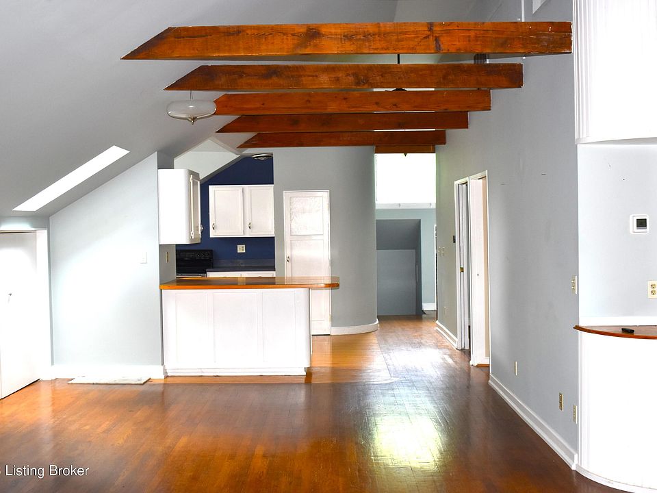 Fabulous CHEROKEE TRIANGLE LOCATION! Move right in to this condo located on the third floor with PRIVATE BALCONY. IMMEDIATE POSSESSION! Amazing unit with GLEAMING HARDWOOD FLOORING, open concept, natural light through numerous large windows, and architectural detail throughout! Exposed brick walls. Wood stained beams in the vaulted ceilings. New flooring in the 2 BEDROOMS. Updated kitchen and 1.5 baths with loads of built in cabinets and closets. Roof and some windows were recently replaced. Amazing location across from Cherokee Park at Cherokee Road and Longest Ave intersection. Easy commute to Highlands shops, restaurants, and amenities! Two entrances to unit: one is through front door of building through interior staircase and the other is rear entrance with private wood steps to BALCONY door entrance.