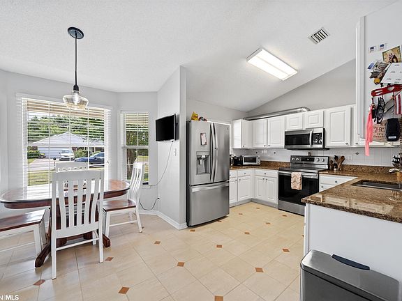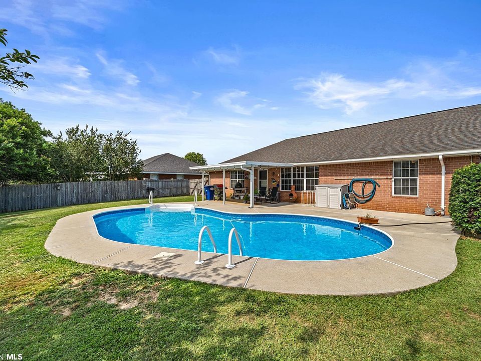 For the first time in 21 years, this beautiful home with an in-ground pool in Ashford Park is for sale! The single-story brick home features an updated kitchen with white cabinets, granite countertops, under-cabinet lighting, stainless steel appliances, and a tiled backsplash. The house also boasts vaulted ceilings in the living room and kitchen, a breakfast nook, and a master suite outfitted with a walk-in closet, double vanity, and walk-in shower. The front yard is perfectly manicured, and the fenced backyard is an outdoor oasis with a large covered patio, a storage shed, and a beautiful in-ground pool installed in 2014. The home is equipped with Fabric Shield storm shutters, an architectural roof replaced in 2018, and a Fortified Bronze designation allowing for affordable homeowner’s insurance premiums (currently with State Farm at a cost of approximately $1400 per year). Ashford Park is a well-kept subdivision in the heart of Foley conveniently located within minutes of the Foley Highs School, the YMCA, Academy, PetSmart, Home Depot, Lowes, Chick-Fil-A, the Tanger Outlets, and many other dining and shopping attractions. Don’t wait – start enjoying this home now!