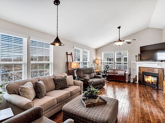 Location is everything with this well maintained end unit townhome in the Reserves of Elgin. Enjoy an open floorplan with a light and bright vaulted family room with a cozy fireplace that opens to the updated kitchen with stainless appliances, a breakfast bar island, and an eating space that opens to the balcony. This split floorplan offers privacy with the master suite on the main level with an updated bathroom and large walk-in closet. The lower level boasts a flexible space that can be used as a living room (or a workout room), a second bedroom, full bath and laundry. Newer hardwood flooring throughout the home. Appreciate the open greenspace the backs to the Reserve that will offer privacy. Convenient to parks, schools, shopping/dining, golf, and ECC. Nearly everything is at your disposal.