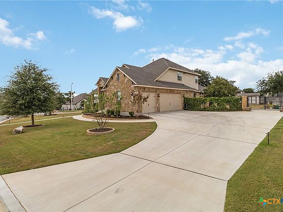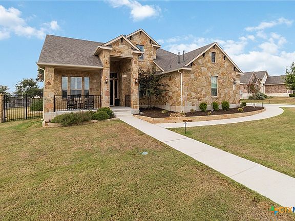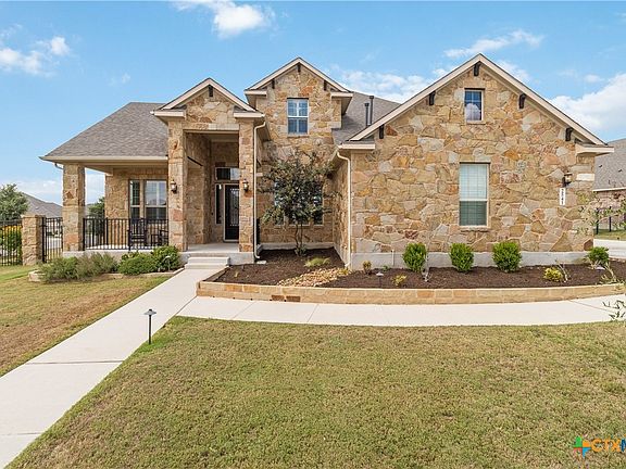 Discover the perfect blend of comfort and Hill Country living in this gently lived in 5-bedroom, 4-bathroom home with 3,542 sq. ft., built in 2021 and set on a 0.42-acre corner lot in the sought-after Manor Creek community. Designed for both everyday living and entertaining, the home features engineered hardwood floors throughout, plantation shutters, and art niches that add style and character. Downstairs master bedroom offers a huge space with a spa like bathroom with split vanities, walk-in shower, deep walk-in closet with custom cabinets. The chef's kitchen is a highlight, offering gas cooking, pot filler, granite countertops, a rough cut granite island, and stainless steel appliances, all complemented by a reverse osmosis water system. Flexible spaces include a downstairs mother-in-law suite w/ walk-in shower, private office and a media room, while the 3-car side entry garage with epoxy floors, custom sink corner and a 10x14 Tuff Shed provide excellent storage options. The driveway has also been extended for flexibility. Outdoors, enjoy beautifully landscaped yards with custom stone planters that create a peaceful setting. Beautiful trees compliment the corner lot with wrought iron fencing, stone complements and Malibu Lighting package that lights up the stone exterior at night. The patio has privacy panels, ceiling fan and water/gas outlets for an outdoor kitchen. Manor Creek offers a relaxing lifestyle with an Olympic-size pool, playground, and walking trail, all within a gated community known for its wide lots and Hill Country feel. With a 1.7% tax rate and easy access to New Braunfels shopping, dining, and recreation, this property combines tranquility with convenience. Upgrades include wonderful granite counters with rough cut granite island, whole house vacuum, sound systems, iQPanel for the connected house, 2 hot water heaters, built-ins for storage, custom cabinets/counter in laundry room, contemporary updated lighting throughout and Builders warranty.