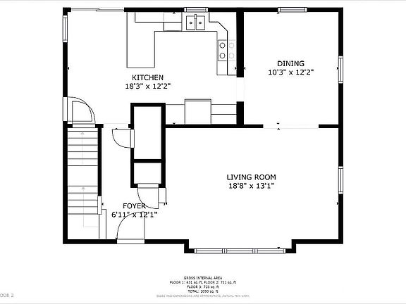 - Total interior livable area: 2,105 sqft