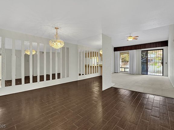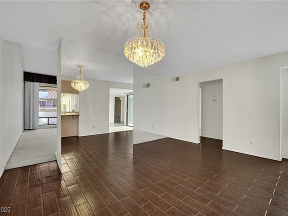 Charming single-story townhouse in a desirable gated community with fantastic amenities! This 3-bedroom, 2-bathroom home features an open and spacious floor plan with a 2-car garage. The vaulted-ceiling living room is enhanced by a cozy gas fireplace and sliding doors that lead to a private backyard with peaceful pool views. The kitchen is fully equipped with all appliances, ample cabinet space, and an eat-in breakfast bar, making it perfect for meal prep and entertaining. A bright indoor atrium with a skylight overlooks the dining area, filling the space with natural light. Enjoy the serene outdoor space with a large patio overlooking the greenbelt, pool, and spa. Recent updates include a roof resurfaced and AC, water heater replaced. located near the Las Vegas Strip, airport, shopping, dining, parks, and with easy freeway access. Don’t miss the opportunity to own this move-in-ready home in an excellent location!