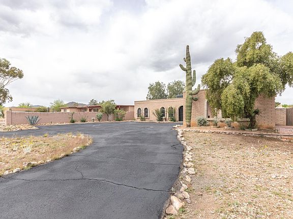 Hacienda style home with unique and beautiful features. This home boasts gorgeous cabinetry, a pass through window and stunning tiled floors. Exposed beams and distressed wood ceiling is a feature you dont see often. Cozy up to this beehive fireplace on those cool Tucson nights. The master suite is spacious and ensuite is comprised of double sinks and walk-in shower. Additional rooms are generously sized as well. Dining options create great entertaining possibilities! Step out onto this covered porch and behold this large lot with RV gate and mature desert plantings. An above ground spa and built-in firepit offer AZ outdoor living at its best. Enjoy outdoor family time while taking in these mountain views! This home is priced to sell and will not last - see this home today!
