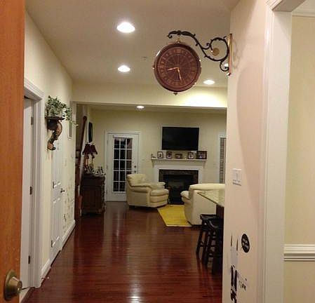 BRIGHT built by WILLIAMSBURG Brick front 2725sf TH in 55+ Comm. Entry level Mr Br. Deck. Backs to trees. 4Br/2.5Bath/2-car gar + 3 driveway spaces. Open plan, Gourmet Kitchen w/granite, 42" cab, ss appl. Hardwd flrs, FPL. Upstairs: Fam Rm overlooks 2-story foyer. Den/walk-in closet could be bath for a 2nd MrBr. Energy Star App. Zoned heat & cool. Club house & trails. Brochure in View Documents.