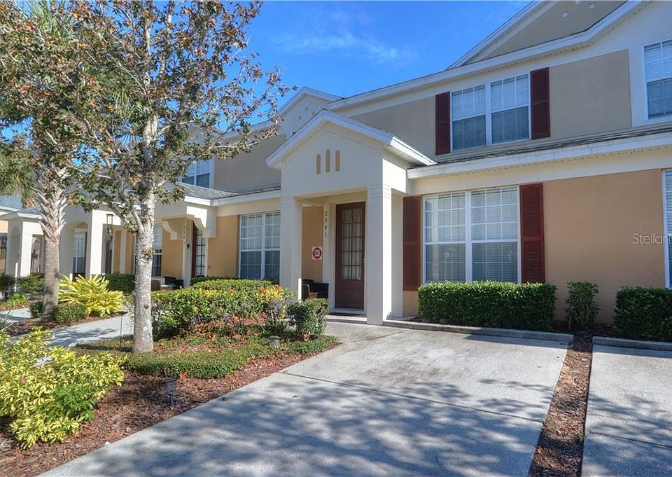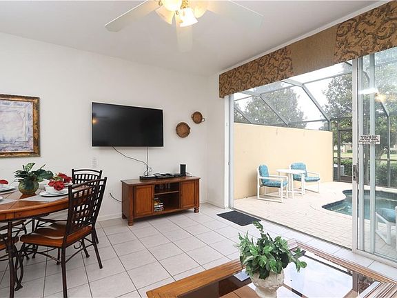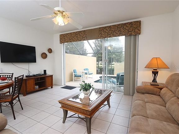 Beautifully Furnished Townhome with Sought After Park View! This townhouse boasts three bedrooms and three ensuite bathrooms and has a wonderful floor plan that provides a bedroom and full bathroom downstairs. The spacious kitchen overlooks the dining area and living room and huge sliders lead out onto your pool deck. Enjoy relaxing on your patio or cooling off in your own private pool. Back inside, you'll love the new and modern laminate wood flooring throughout upstairs and in the bedroom downstairs, and will delight in the fact that all three bedrooms have new furniture. Great location within the community as you have just an easy walk to the clubhouse and no rear neighbors and instead just picturesque magnolias and a lawn as your view. This home is located in the popular guard gated, resort style community of Windsor Hills that features a lagoon style pool, water park, fitness center, movie theater, tennis, basketball and volleyball courts, picnic area and more! With this incredibly central location you're just minutes from everything central Florida has to offer including Disney, Sea World, Universal Studios, dinner shows, outlet malls, regular malls, grocery stores, restaurants and main roads! This home is being sold with all its furniture and other contents making it turn key ready! Zoned for short term renting! Make this your very own Vrbo or AirBnb home today!