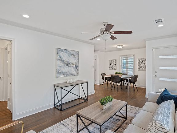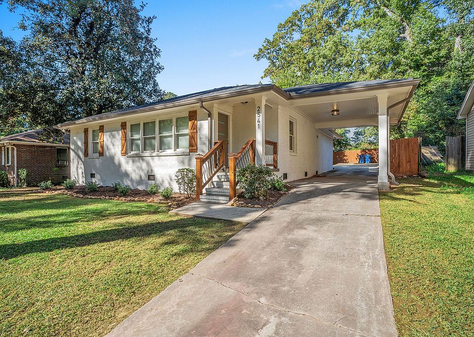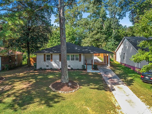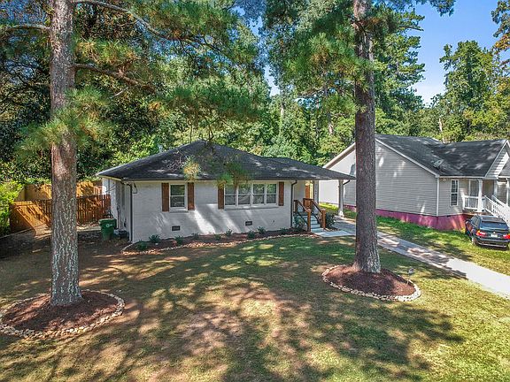 Gorgeous renovation of an Atlanta classic bungalow. Large lot with mature trees and privacy-fenced backyard. Hardwood floors throughout, sophisticated neutral color scheme, recessed lighting and architectural details. Formal living room and separate dining area. Fireside family room with trey ceiling and plenty of light. Stunning kitchen with plenty of new storage, breakfast bar, tile backsplash, granite counters, stainless steel appliances including a range hood. Spacious owner's suite with barn door to ensuite - includes a glass and tile shower, marble vanity. 2 spacious secondary bedrooms plus another full bath. New deck and motor court.