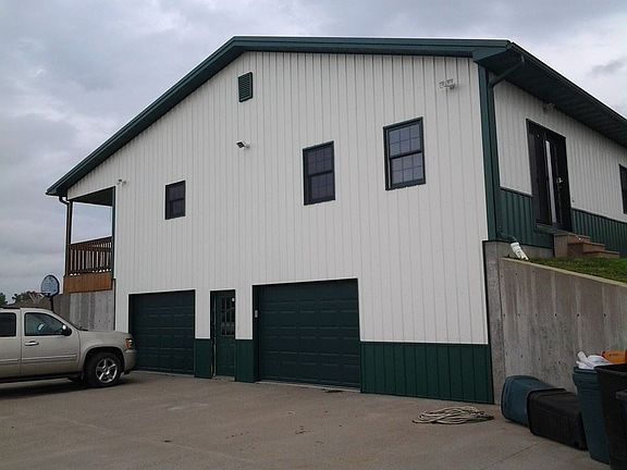 The house is 40 x60 with a full basement. Half the basement is walk out for the garage. Living space is 3600 sq ft finished and 1200 sq ft for garage and safe room. Floor of the basement has radiant heat run through it but is not hooked up for circulation. Front porch is 10x66 with a ramp on the east end. Circle drive comes up to the front door and also goes all the way around the house. We are not hooked up to rural water. There is a picture showing the set up. The house is all electric with heat pump. It sits on 7.5 acres with 24x48 barn and a small weather shelter on the corral.