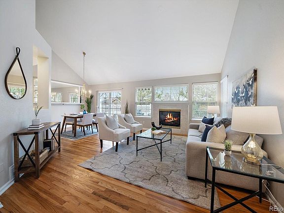 vaulted ceilings illuminate the home’s bright & airy flow, while a gas fireplace & brand-new gold light fixtures lend a