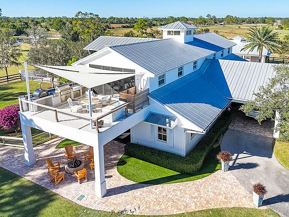 Private Gated Luxury Equestrian Estate West of Hobe Sound. Minutes to beaches, dining, shopping, I-95, Apogee Golf Club, Atlantic Fields, and The Ranch. Trailside Community is gated and features PVC white fencing for every estate throughout. This estate welcomes you with an Oak-lined long driveway with modern teak gates, keypad entry and scenic views in every direction.This estate features a total of 3 Bedrooms, 3.5 baths with open floor plan, gourmet kitchen, gas range, walk-in pantry, bar area, dining room, sitting room, gym with steam shower, outdoor shower, walk-in primary closet, large primary bath, two patios off main living area, all-glass modern living room, and expansive outdoor entertaining areas. Resort-style outdoor amenities include 30x60 pool with built-in bench, fire pit, gas lanterns, pizza oven, brand-new grill, Green Egg, and 500-gallon propane smoker.