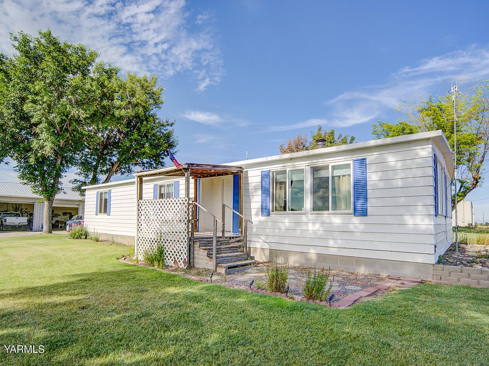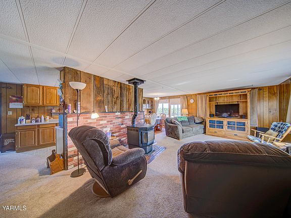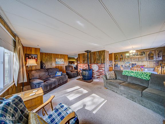 Nicely maintained 3 bed 2 bath manufactured home with a large shop, barn, and an insulated out building/ shed, all just shy of an acre. Enter into open great room flowing into dining and kitchen to a family and bar area. Detached shop garage with 220 power. Paint booth bay with ventilation & air for spray guns. Double deep RV and boat bay, 4 roll up doors, and one sliding door. Large barn with tractor storage area. Insulated out building / shed was a former meat locker, hooks & wench still in place (cooler will not stay). Shared driveway with 2541 B (MLS 22-1808).