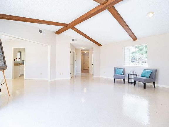 Sweet 3 Bedroom, 2 Bath home that is ready for its new owner. This home is situated on a large lot that is nearly a quarter of an acre, with a side entry 2 car carport. Inside the home you will find new neutral vinyl flooring throughout the living, dining and kitchen areas, soothing light grey paint, and down the hall and in the bedrooms is wall-to-wall low carpeting. Master bathroom has an easy to access, fully tiled floor which extends into the shower. You will love the open, cottage feel, with its exposed beams and fireplace in the living room.
