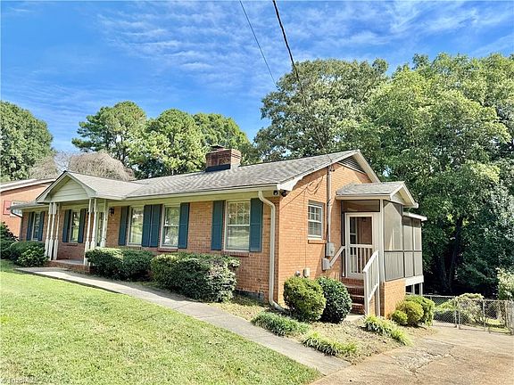 Lovely low maintenance brick ranch~ Located on dead-end street in poplar Meadowbrook neighborhood. Beautiful fenced yard with crepe myrtles, huge azaleas + garden space--gardeners delight! Large eat-in KIT with spacious pantry + side door to screened porch for EZ access with groceries. Real wood floors in LR, 3 BR's, entry and hallway. En suite Primary BR. Two real masonry fireplaces (den/basement) Gas FWA (2018), A/C (2017) Potential expansion in large partially finished basement playroom area which is not included in square footage. Large 1-car garage in basement + potential workshop area. Super convenient location - near Hanes Mall, Shopping, with EZ access to major roads and Hospitals! Pre-list Inspections Report on file. See listing agent for details.