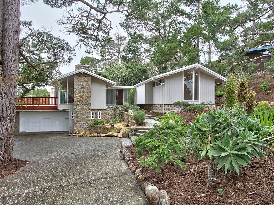 Coveted Carmel Unified school district, this 4 bedroom, 4 bathroom home offers lots of space and great potential. 3 bedrooms each with their own full bathroom, eat in kitchen, large spacious living room/dining room and two fireplaces on the main floor. Downstairs has another bedroom with fireplace, living area, full bathroom. Feels like you are in the mountains of Big Sur, surrounded by lush gardens, lots of privacy yet close to everything!