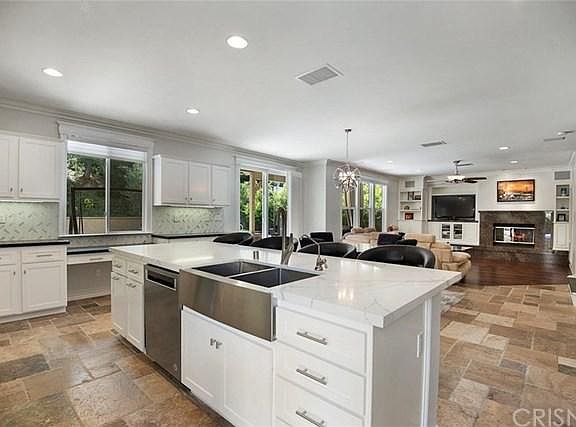 Amazing Southern Oaks executive home with oversized lot, geometric pool/spa, waterfall, custom stone work, patios, cabana with outdoor entertainment area. This beauty encompasses 4200+ square feet w/6 bedrooms +downstairs office/bedroom, 5 full baths; Completely remodeled kitchen includes newer white cabinetry & new pulls with soft close cabinets and custom back splash w/herringbone white and grey pattern. Countertops are gorgeous white quartz with contrasting black quartz; Stainless appliances include new hood, cooktop, farmhouse style sink, Bosch dishwasher, double oven. Gorgeous living room with custom granite fireplace surround & hearth; Crown molding throughout; Family room has hardwood flooring, granite fireplace w/raised hearth & built-in cabinet for components; New matte hardwood black stairs going up; Oversized bedrooms throughout- upstairs one bedroom is ensuite & two share a Jack & Jill; Office & downstairs bedroom both have engineered hardwood flooring; Master suite includes fireplace, custom media niche; The master bath has newer cabinetry, upgraded granite countertops, new porcelain tile flooring with glass overlay; Upgraded master shower w/pebble flooring & granite seat; Additional ensuite bedroom off master with deck & spiral staircase down to yard, w/separate a/c unit, remodeled full bath & hardwood floors. Recently painted interior. Amazing deck off master overlooks yard; 3 car garage w/epoxy flooring, cabinets. Porte-Cochere drive with gate; Much more!
