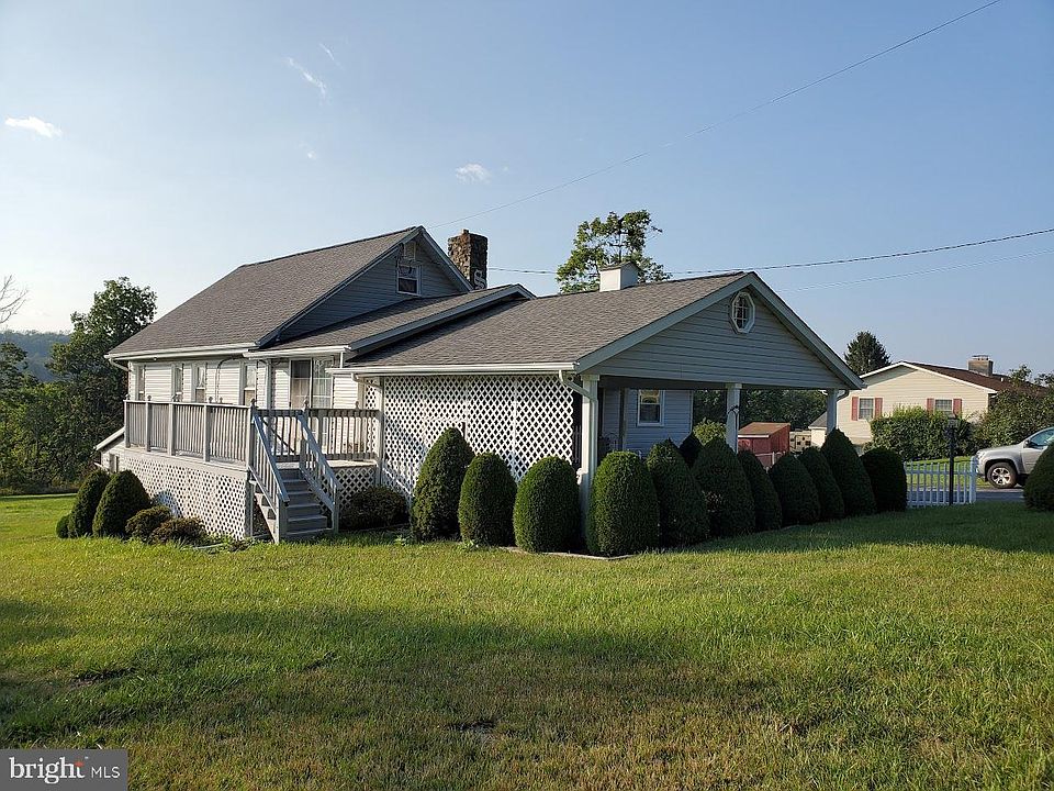 Walking distance to Fort Ritchie. Extremely clean 2-3 Bedroom, 2 Full Bathroom Rancher on private .68 Acre lot. Large 2-car carport leading to a large front porch with front door opening to the living room or alternate door leading into the kitchen. Living room shows off the home's original log structure and gas stone fireplace. Sunroom off the living room walks out to side deck with stunning views. Large eat-in kitchen has ample cabinet space, corner hutch and breakfast bar. Bedroom area has been opened up for use as one but easily converted back to a 2-bedroom on the upper level. Lower-level has a family room or bedroom and full bathroom. Laundry and storage rooms also in the lower level. Home has new tilt-in windows, newer roof and furnace. 2 Garages (1 attached and 1 detached) with a workshop room in the back of the detached garage. Additional storage shed.