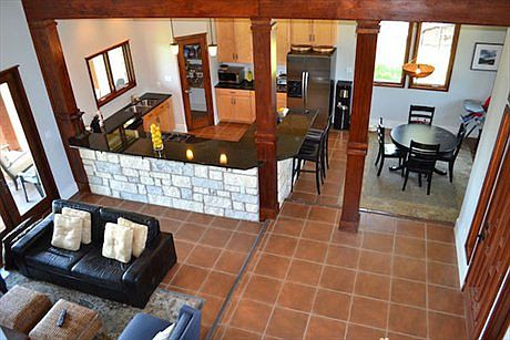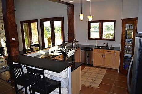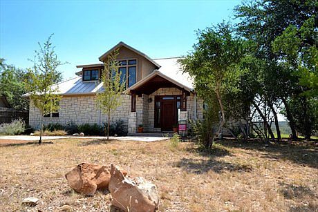 1.4 Acres, 105 feet waterfront on Pedernales River(stairs/tram needed).Covered porches w/views.Open liv, dine, kitch w/2 story ceiling, fireplace, built-ins.Granite & stainless steel in kitchen + gas stove & walk in pantry.Glass French doors in living/master bedroom.Huge 1st floor master, double vanities, walk in shower & closet +doggie door.Lots of storage-full closet + big laundry room.Upstairs bedroom/living w/sleep in window, views & 1/2 bath.Community boat ramp on next street over-$25 for gate key.
