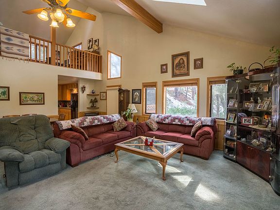 This spacious home built in the late '90's has quality construction throughout with a functional layout perfect for full-time living. This 3 bedroom home has a giant loft area that could easily make a 4th bedroom. Drive into your garage with the dedicated laundry room and lots of storage and enter your home without ever stepping outside. The family room is tall, bright and spacious. High ceilings with bright skylights create an open feeling with treetop views in all the dual pane windows. Excellent insulation, large rock fireplace, forced heat system and pellet stove all combine to make this home warm and efficient. The kitchen is large with a long island and plenty of room to make it your own. The master suite is spacious with an abundance of closets and an oversize ensuite bathroom. The kitchen is large with a long island and room plenty of room to make it your own. The large oversized loft is constructed with beautiful wood and a bright open feel. Covered front, side and back patio decks provide extra living space. Low maintenance lot has plenty of beautiful trees. Just a couple hundred feet from miles of hiking and biking trails. Owner will consider financing with 15-20% down.