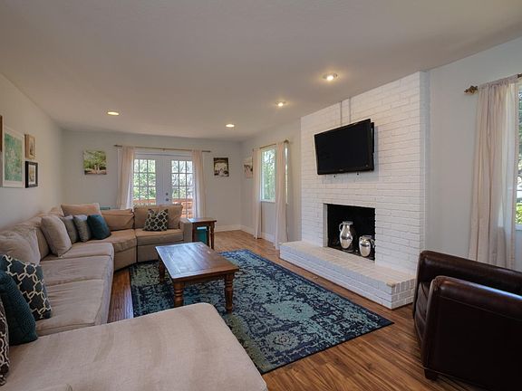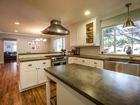 Great Mid-Valley location on a peaceful cul-de-sac. Set on one-acre with a large and beautifully landscaped yard offering mountain views, a built-in gas fire pit, raised vegetable gardens and drought conscientious turf fabulous for entertaining and to simply relax in the warm sunshine! Single story three bedroom, two bathroom house with separate downstairs guest unit or 4th bedroom with additional full bathroom. Updated kitchen with breakfast bar, new interior paint, all new flooring and new windows. The warm tasteful dcor beckons you to move right in!