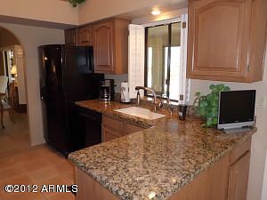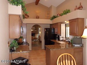 Golfers delight! Everything has been done..just bring your clubs and your toothbrush. This home shows pride of ownership, come see for yourself.Slab Granite,newer appliances,cabinets refinished,large tile in all the right places,beamed and vaulted ceilings, plant shelves and plantation shutters are just a few of the many extras.Newer carpet throughout. Arizona room on North side with huge windows that over look the golf course and mountain views, a wet bar, sink and heating and cooling.Den/office can be a 3rd bedroom w/closet.Mature landscaping w/fruit trees,2 orange 1 grapefruit. Furniture and golf cart available on separate bill of sale.