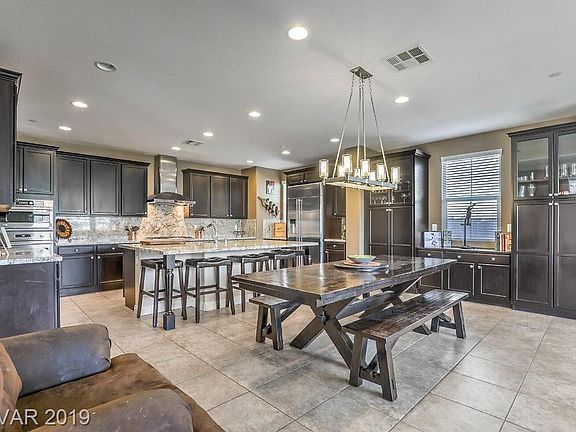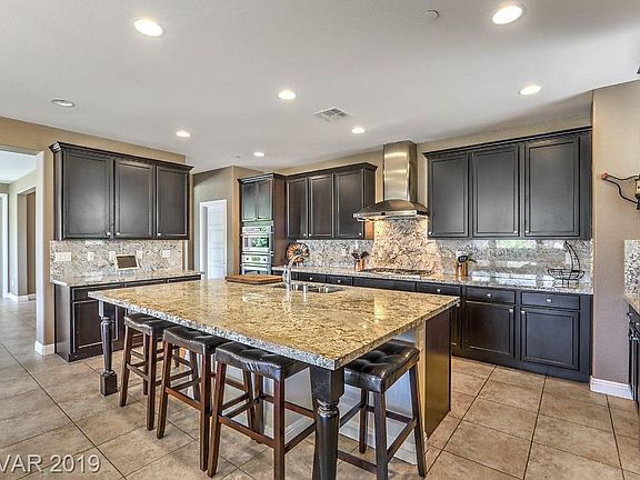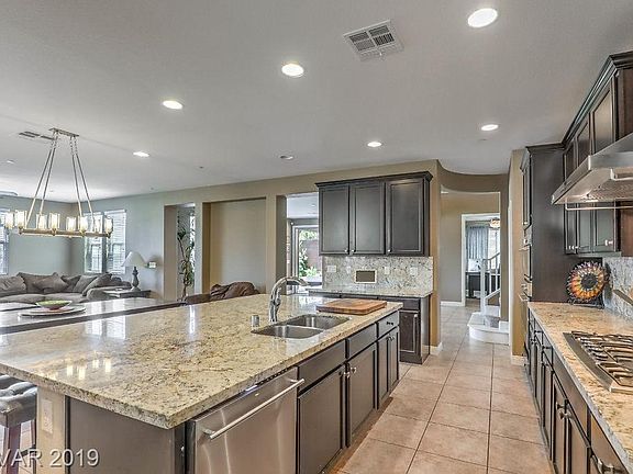 Amazing five bedroom home in gated Inspirada community! Most desirable location with no neighbors behind, walking distance to parks. With huge kitchen open to family room, one downstairs bedroom separated from living areas, and spacious loft overlooking the grand foyer, this one will sell fast! Three stack sliding glass back door for indoor/outdoor entertaining, backyard lawn.